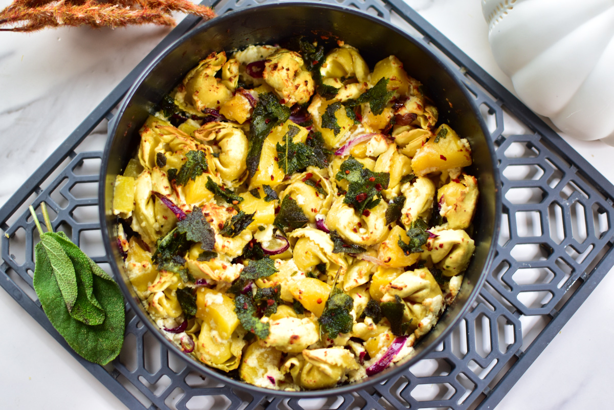 Airfryer Tortellini mit Kürbis, Feta & Salbeibutter